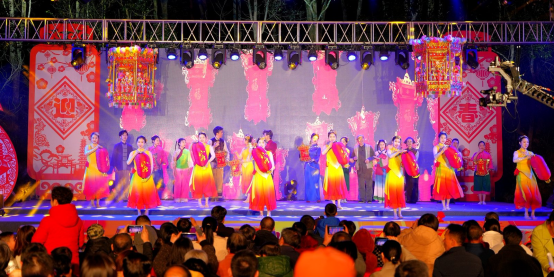 有了与山水共生的舞台,还需要让传统民俗在聚光灯下重新呼吸。 在南福村活动现场,特别设置上灯仪式,并融入“牵春牛”等传统民俗环节。事实上,如何将传统民俗与现代晚会融合而不显生硬?这是张艳媚面对的一道“考题”。她认为,上灯习俗本身是梅州地区对新生命的礼赞,从捧出花灯到缓缓升起,整个过程本身就具有极强的仪式感和感染力,融入舞台并不突兀。更重要的是,这样的呈现方式能让年轻一代直观地感受到传统文化的魅力,看着花灯缓缓上升,那种温暖和向上的力量会在孩子心中留下印记。