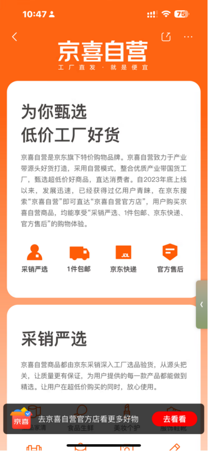 平台的监管责任在哪里?京喜自营并非普通第三方商家,据百度百科介绍,京喜自营是京东旗下特价购物品牌,致力于产业带源头好货打造,采用托管模式,商品的供应链管理、库存管理以及售后服务均由京东负责,品控方面对供应商设置了准入条件,采用受邀入驻方式,并依托京东的供应链体系进行实地验厂。