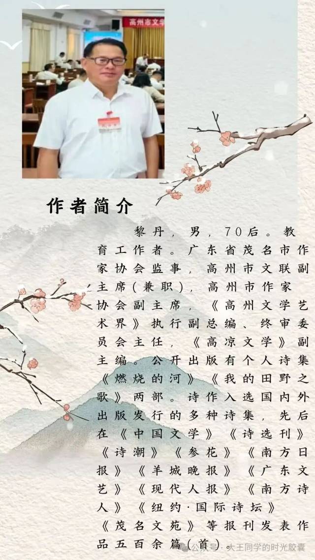 黎丹,作为70后教育工作者,现任茂名市作家协会监事、高州市文联兼职副主席及高州市作家协会副主席,多年来笔耕不辍,其作品曾在《南方日报》《羊城晚报》等多家报刊发表,累计达五百余篇(首)。《我的田野之歌》是他深耕乡土的结晶,以细腻笔触定格粤西田野的烟火与诗意,承载着对故土的深沉眷恋。