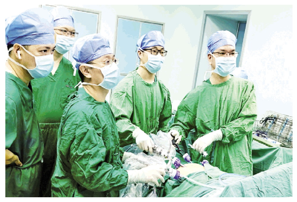 近日,高州市人民医院成功为一名腹腔大网膜粘连严重、解剖层次模糊难辨的77岁结肠癌患者,完成腹腔镜右半结肠切除术。这台极具挑战的复杂微创手术,在该院特聘专家——中山大学附属第六医院(下称中山六院)胃外科一区主任、主任医师、博士生导师练磊现场“手把手”指导下完成。目前患者正在康复中。