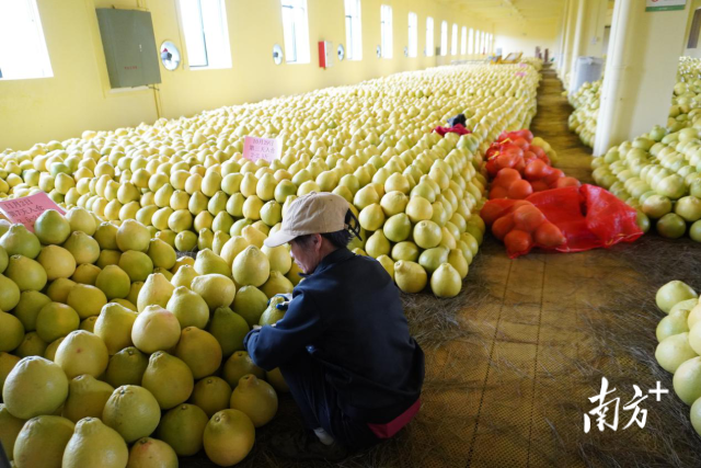 在金喆园的仓库内,一颗颗长坝沙田柚被整齐摆放在地上,杉木板的木香、松针的松香、沙田柚的柚香,三种类型的香扑面而来,金灿灿的果子丰收景象煞是喜人。谢坤佑表示:“长坝沙田柚从来不打蜡、不添加防腐剂,却能越放越甜,因而享有‘天然水果罐头’的美誉,售价最高可达15元/斤,是水果市场上颇受消费者青睐的‘网红柚’。”