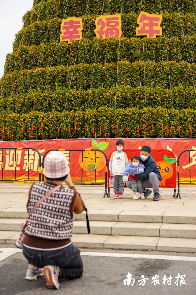 高达16.8米的年桔塔吸引市民拍照留念