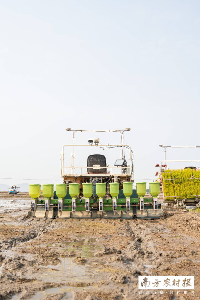 惊蛰时令,万物生发,标志着南粤大地耕种生产拉开帷幕。在汕尾市海丰县可塘镇,一幅热闹的景象:阵阵轰鸣声响起,新型无人插秧机、播种机、耙田机、植保飞机同时作业,“海陆空”构建农田春耕工作网……