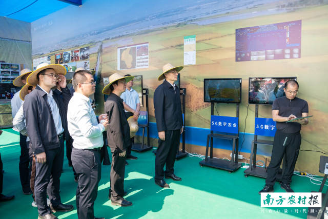 此外,数字农业助力耕作亦是汕尾农业发展一大亮点。现场会上,会议代表观摩了无人插秧机、无人耙田机、无人直播机、高速插秧机、植保机等各类自动化农机装备现场作业,参观了解省级农科专家5G现场云会诊的各类数字农业先进技术,放心农资、农业科技和农业金融保险等支农下乡服务等展位。