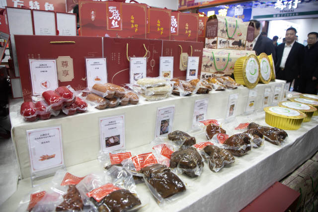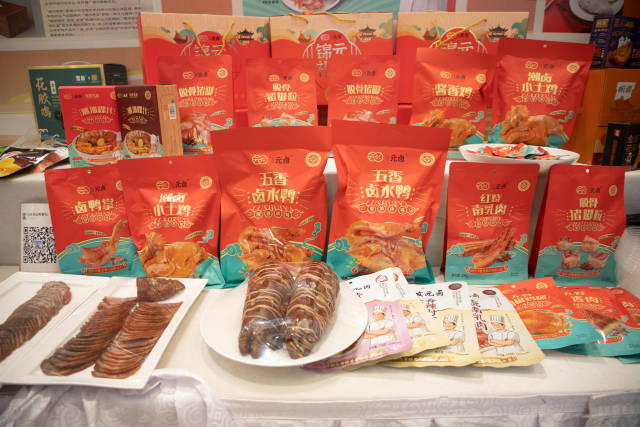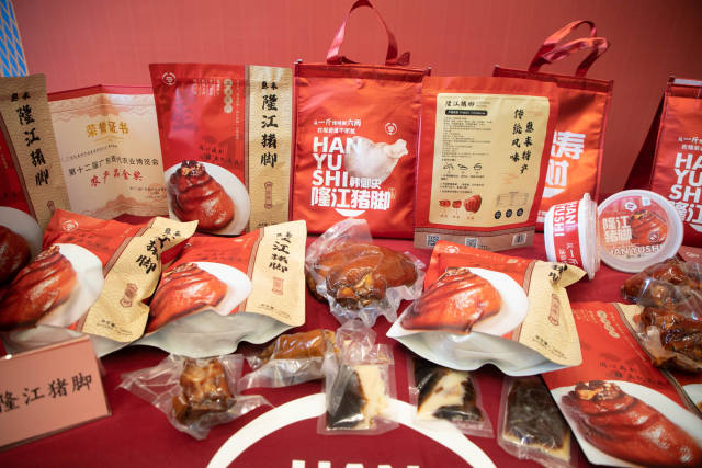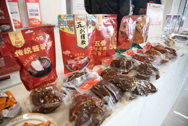 传统酱驴肉、传统酱牛腱、五香酱牛肉、五香扒猪脸、玫瑰红肠等预制菜品现场展示,令人口水垂涎。