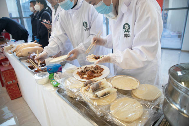 在活动展区“一条街”,广府菜、粤西菜、客家菜等地域特色的预制菜品琳琅满目,现场的广东展商向当地采购商、嘉宾推介“看家货”,“喊”京津冀人民吃广东预制菜。