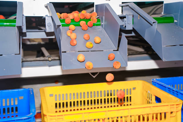 新品新气象,今年仙品荔包装全新升级,活泼时尚,主题元素鲜明,令人心动。发布会现场人头攒动,人们聚集在展位前,品尝第一批新鲜上市的仙品荔,乌塘镇湛川村新时代文明实践站志愿者维持会场井然有序;旁边的湛川河谷仙品荔清洗分级中心(下称“分级中心”),配置荔枝自动化分拣机,颗颗荔枝进入挑拣环节,整个过程实现标准分级,严格品控。