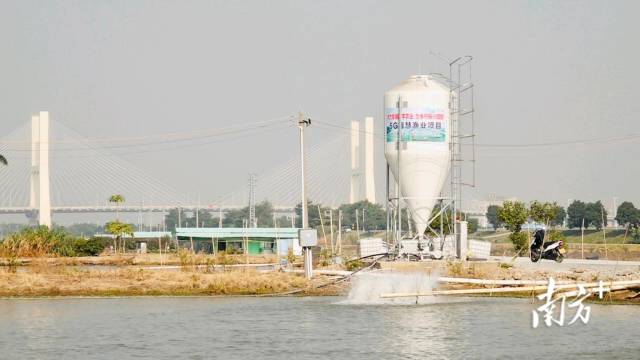 走到鱼塘边,记者看到一台台运用5G技术的自动投喂机正在运作。“只需在手机上操作,一台自动投喂机就可以同时投喂3个十几亩的大鱼塘,大大节省了人工,还能保证品质均衡。”欧浩枝跟记者说道。手机上不仅可以精准看到饲料投喂情况,还可以做水体溶氧、鱼塘增氧、视频监测等操作。