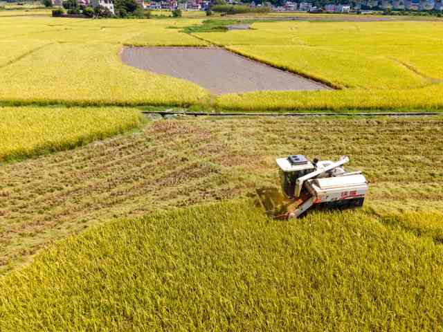 水稻收割机往来穿梭