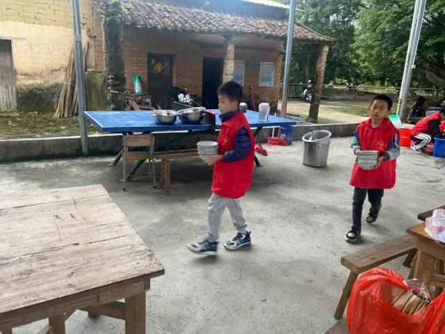 在各村居活动现场,除了镇村干部、热心村民,还能看见一些学生小朋友的身影,他们在家长的带领下,帮忙洗碗、收拾桌椅,干一些力所能及的工作。小小志愿者们在公益活动中接受传统美德的心灵洗礼,在实际行动中将孝亲文化潜移默化,敬老爱老助老的孝亲文化在青少年们心中生根发芽。