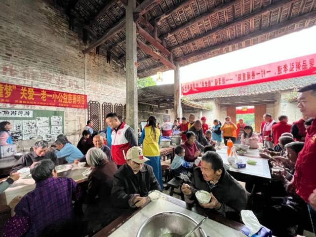 红色古村樟洞坑村“一粥一乐”活动的炊烟也是如约升起,自去年6月开办以来,星期日早上的肉粥都是樟洞坑村老人们每周的期盼之一。“同龄人围坐在一起,吃着肉粥包子,聊聊家长里短,觉得很开心。”丘阿伯说到。樟洞坑村“一粥一乐”志愿活动开办至今反响热烈,吸引着越来越多的党员干部、青年志愿者主动加入,志愿服务队伍愈发壮大,累计参与志愿者达300多人次,服务群众1500余人次。多次参与志愿活动的网红一线农村小余哥说:“‘一粥一乐’让我感动,作为一名将要扎根派潭的新农人,我会全力支持参与这个公益活动,让村里的老人安享晚年、其乐融融。”