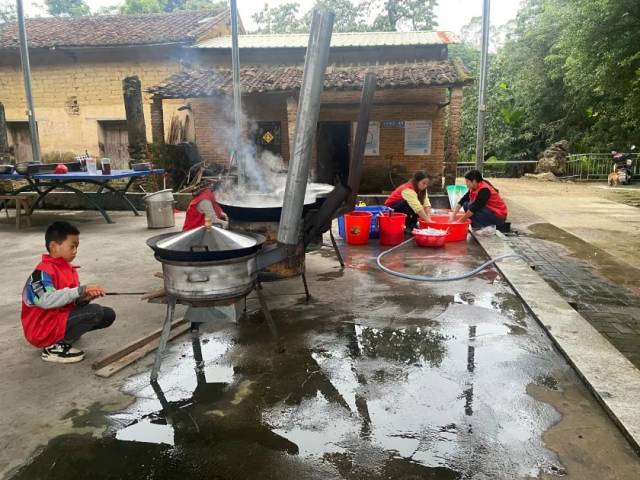 最好的关爱是陪伴,最真的关怀是行动。清晨的派潭镇旧高埔村,安宁古朴,云雾还未散去,古老的建筑群将一湾碧潭镶嵌在鹧鸪山下,九龄学堂的孝心食堂人来人往、炊烟袅袅,镇村干部和志愿者们一起忙碌着,添柴生火、切肉淘米、洗刷碗筷、摆放桌椅,不一会肉粥和包子的香味飘香十里。村内老人们陆陆续续地前来感受一场清晨的热闹,志愿者们忙不迭地招呼老人们入座,给他们送上一碗碗热粥和包子,大伙儿围坐一堂其乐融融,喝着粥吃着包子,亲切地寒暄,唠叨着家常。一顿暖心的早餐后,镇村干部与老人们面对面聊聊天、谈谈心,详细地询问了解他们的身体情况和生活状况,用朴实而真诚的行动表达着对老人们的关心和关怀。
