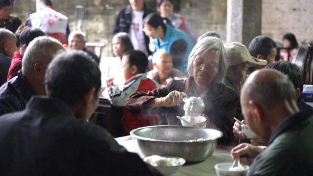 位于七境村中陈合作社饭堂也是一派热闹的场景,老人们围坐一堂吃着美味的肉粥,闲话家常或倾诉着过去的旧时光。七境村自今年8月份开展“长寿粥”活动,每周日清晨,四面八方的爱心志愿者为村内老人提供免费热粥等早点。作为管理人,陈焕明先生感慨道:“活动开办之初心里很忐忑,但是大家出钱又出力,有的赞助猪肉,有的赞助包子,有的赞助米,有的赞助油盐,有的赞助柴火,老人们也是吃的很开心。村民和志愿者们的肯定给了我们坚持下去的信心。”七境村书记陆丽冰在活动现场忙前忙后,分粥递包子,又穿梭在一桌桌的老人中与他们寒暄,给他们送去最亲切的问候。“作为村书记,我带头参与,希望能带动更多志愿力量加入到活动当中。”陆丽冰如是说。