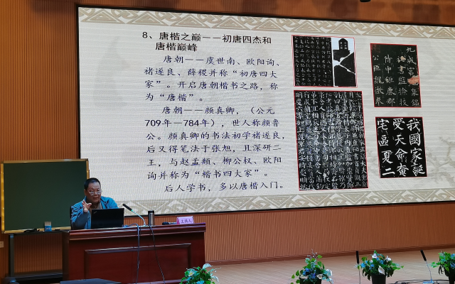 11月20日,“中国文字书写的起源以及现代书写技法”讲座在师生们的期待下如期展开,镇宁县政府办副主任罗治,思源实验学校校长卜良权,副校长韦丁、吴忠祥出席。从书法起源、鼎盛年代,到楷书、行书的具体技法要领,陈龙文教授娓娓道来,让在场众人感受到书法艺术的独特情趣。