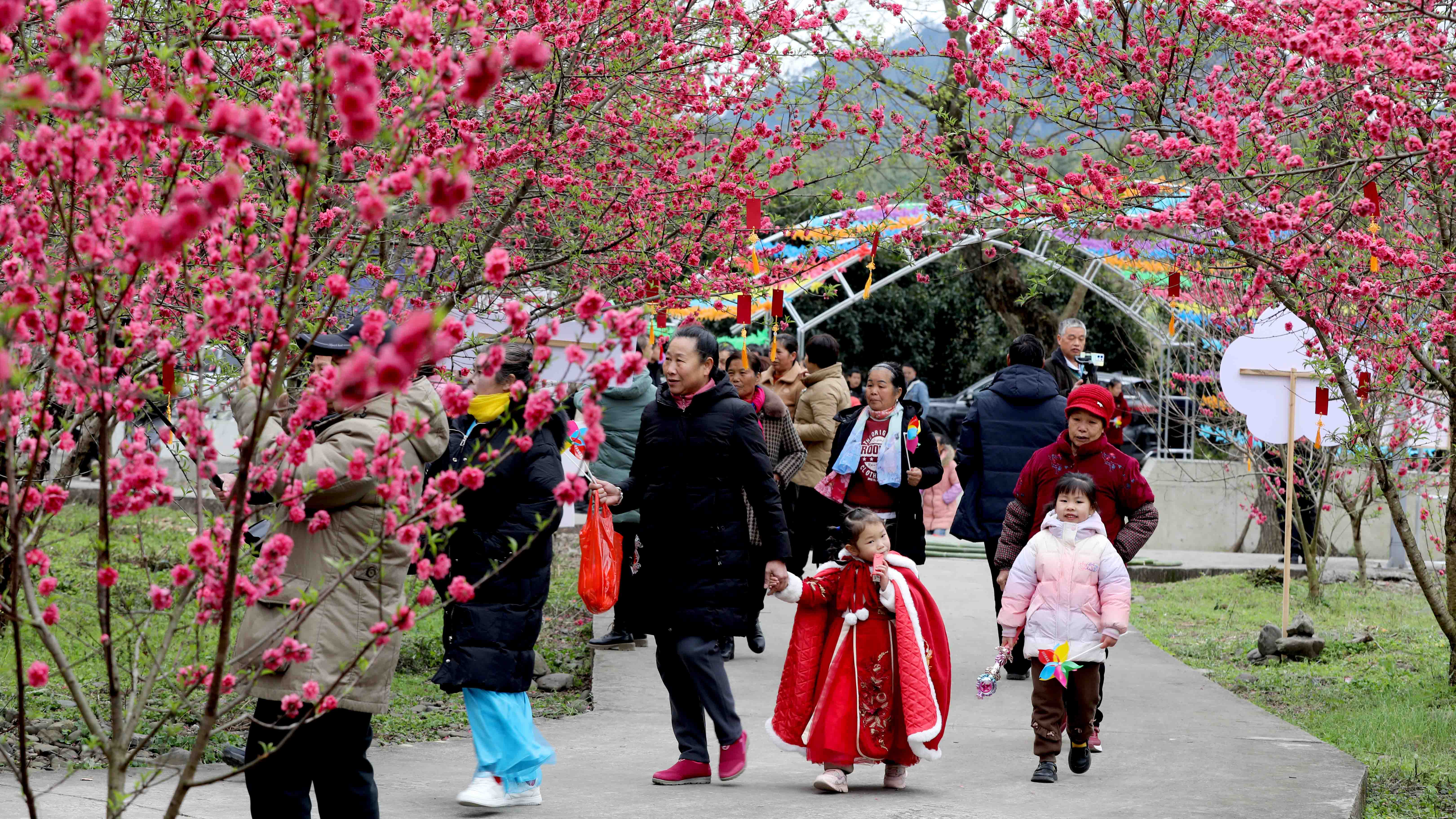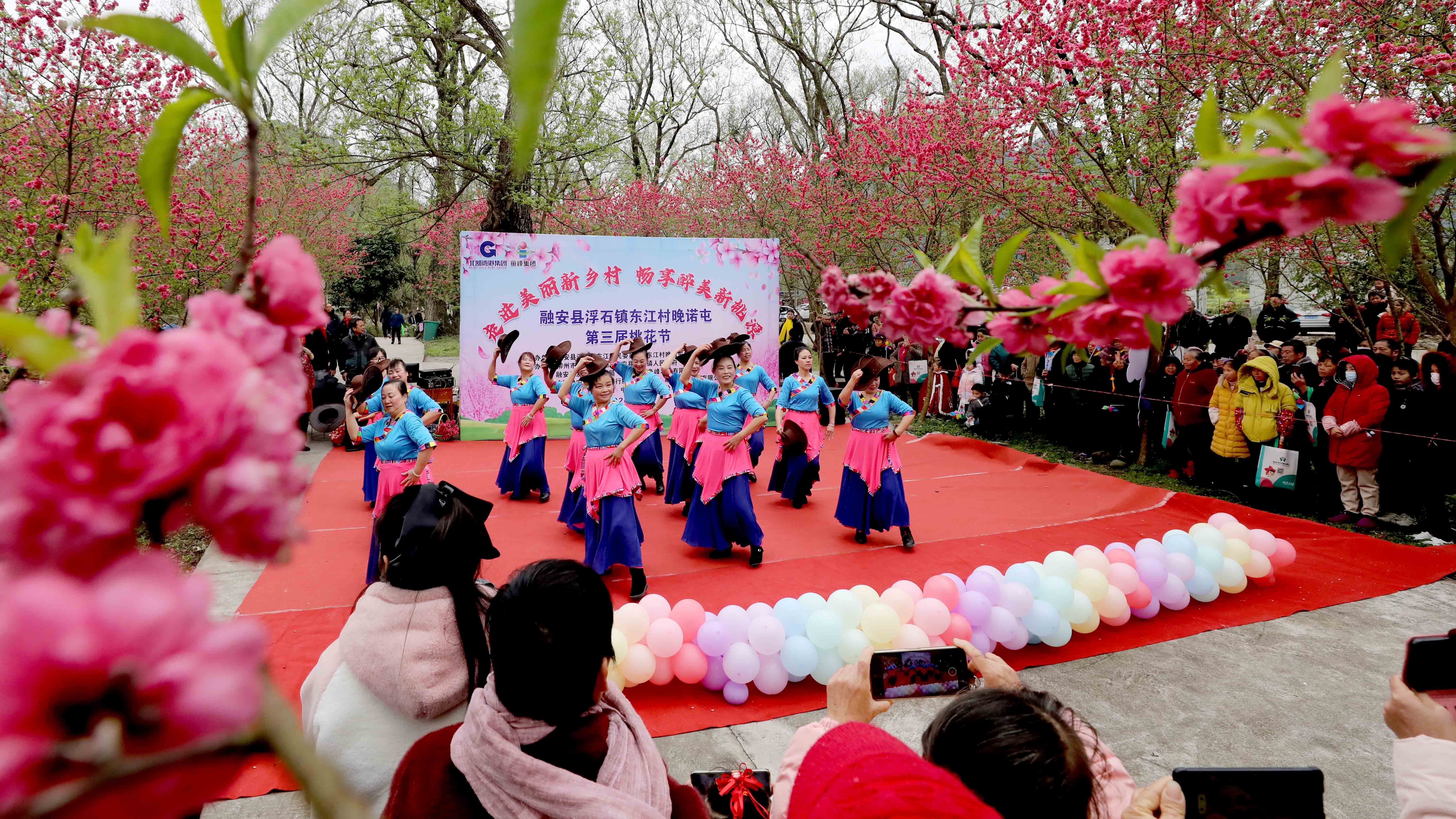 2月25日,在广西柳州市融安县浮石镇东江村晚诺屯拍摄的桃花节活动现场。