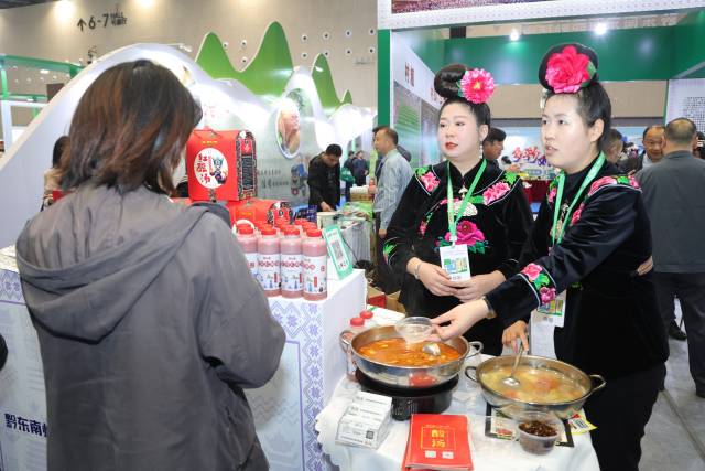 本次大会,黔东南州组织有20多家优质特色农产品生产企业参展,除酸汤系列产品外,生态鸡、生态鸭、食用菌、牛肉、蓝莓、山茶油、苗侗山珍等黔东南州特色农产品集体亮相。