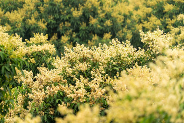 春满郁南美,黄皮花映绿,踏青正当时。郁南三月的浪漫,春天和黄皮花各占了一半。蓝天白云之下,这片绿意盎然的土地,黄皮花正开着热烈。漫山遍野的花朵摇曳枝头,如同云锦似的满天铺开,惊艳着整个郁南,令人陶醉其中。