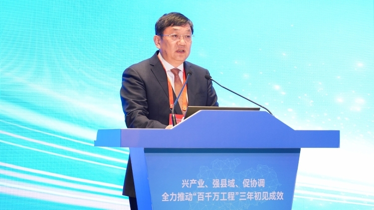 在主旨报告环节,施祖麟首先围绕“以‘百千万工程’推进城乡融合发展”作主旨报告。他基于广东的省情,指出了当前广东发展存在区域不平衡,城乡不平衡、县域经济薄弱的问题。但随着“百千万工程”的实施,部分地区已经取得发展上的显著成效,其经验可总结七个“有”:即有人力、有资金、有机制、有政策、有章法、有考核、有效果。经过对广东多次深入实地调研,他提出了三条具体的发展建议:从顶层设计上,要优化市场环境,针对粤东、粤西、粤北及珠三角地区的不同特点,构建差异化的整治模式;从重点突破上,建议建立环“两山”农文旅融合发展的“旅游特区”,力求在数量、质量、优化、美化和品牌建设上取得突破;从长远考虑上,应全面推进乡村文化复兴,将其与乡村酒店产业集群建设、数字乡村人才培训基地以及文化和旅游特色村创建等相结合,最终形成一个集有机生产、有机生活和有机治理于一体的可持续发展系统。