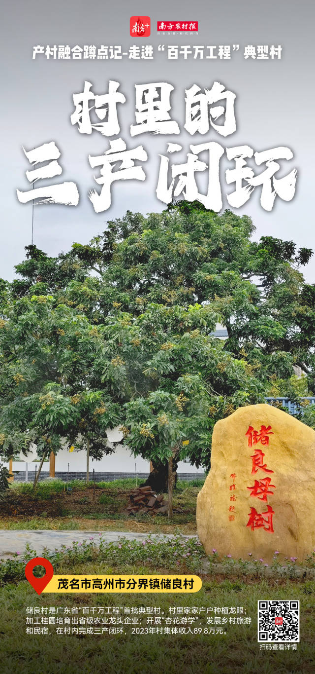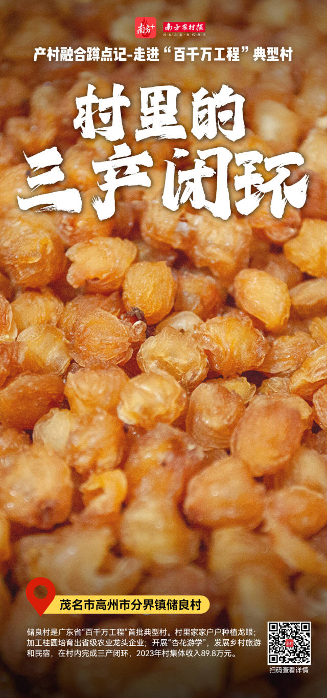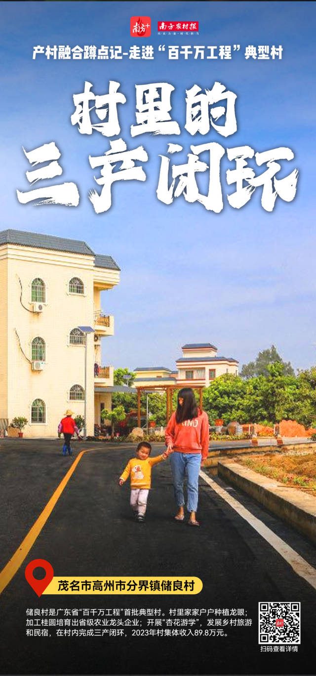 随着研学的壮大、储良村在村内形成了三产闭环,一产以种植荔枝龙眼为主;二产以桂圆肉加工,村里涌现出升级现代农业龙头企业;三产发展、旅游、民宿研学,“杏花研学”成为新招牌。“新村民”的入驻,也让全村焕发出新活力。