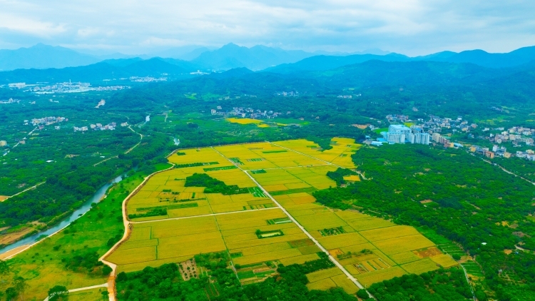 风吹稻浪,幸福花海,宫崎骏的夏天……中山市南朗街道崖口村一眼铺开的千亩稻田,给过往旅人留下了无限遐想。逛稻田,赏海景、吃煲仔饭,循着旅人打卡游玩的路线,崖口大米最终化作舌尖上的甜香。