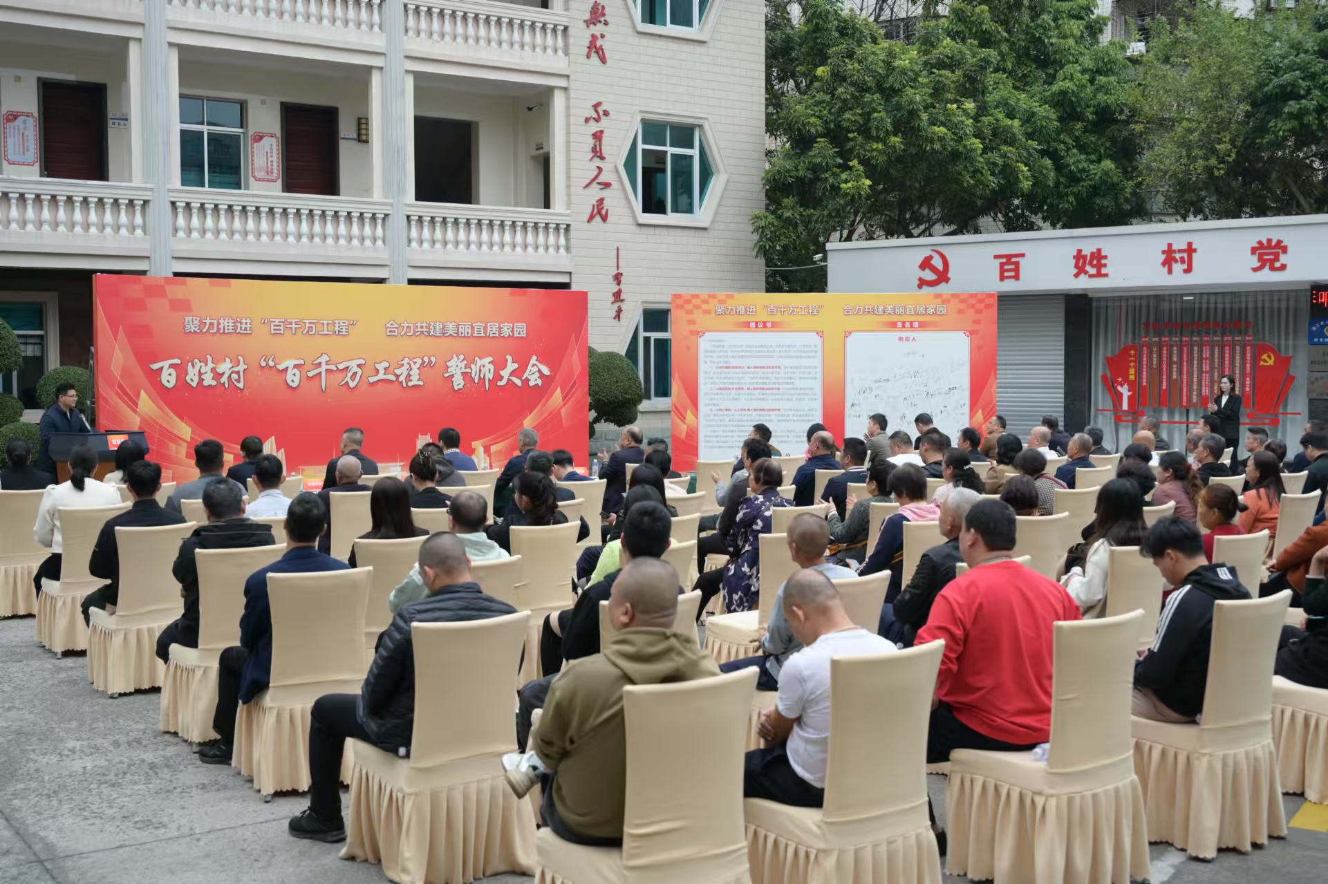 据了解,当天下午,赤坎区九个典型村——百姓村、草苏村、东园村、东山村、丰厚村、福建村、金田村、文章村、调顺村也同时吹响了“百千万工程”誓师大会的号角,会上区人大代表、街道、挂点单位和驻街帮村工作队有关领导干部代表,各村“两委”干部、党员代表、村民代表、企业代表等纷纷表态发言,并签署“百千万工程”倡议书,凝聚最广泛共识、形成最强大合力,一同推动“百千万工程”结出丰硕成果。