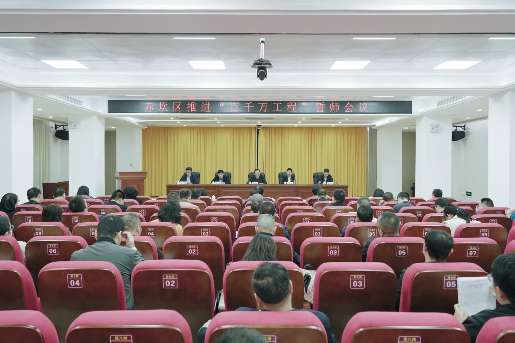 调研结束后,誓师会议随即召开,听取区“百千万工程”指挥部办公室、区“百千万工程”指挥部各专班、各街道今年推进“百千万工程”的工作、明年工作打算情况汇报。区委副书记黄政传达市委常委会廉江市现场会暨市推进“百千万工程”誓师会议精神,对明年“百千万工程”重点工作作部署;区政府党组成员陈江就《赤坎区风貌管控提升示范带连片打造专项行动方案(讨论稿)》作说明;区住建局、各街道主要负责同志作表态发言。