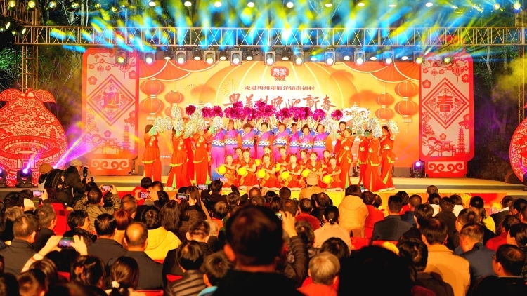 唱出潮乡美,过个“非遗年”。1月21日晚,潮州市湘桥区桥东街道社光村“‘社’放光彩 逐梦新程”——助力“百千万工程”村晚文艺汇演在社光村文化公园举行。