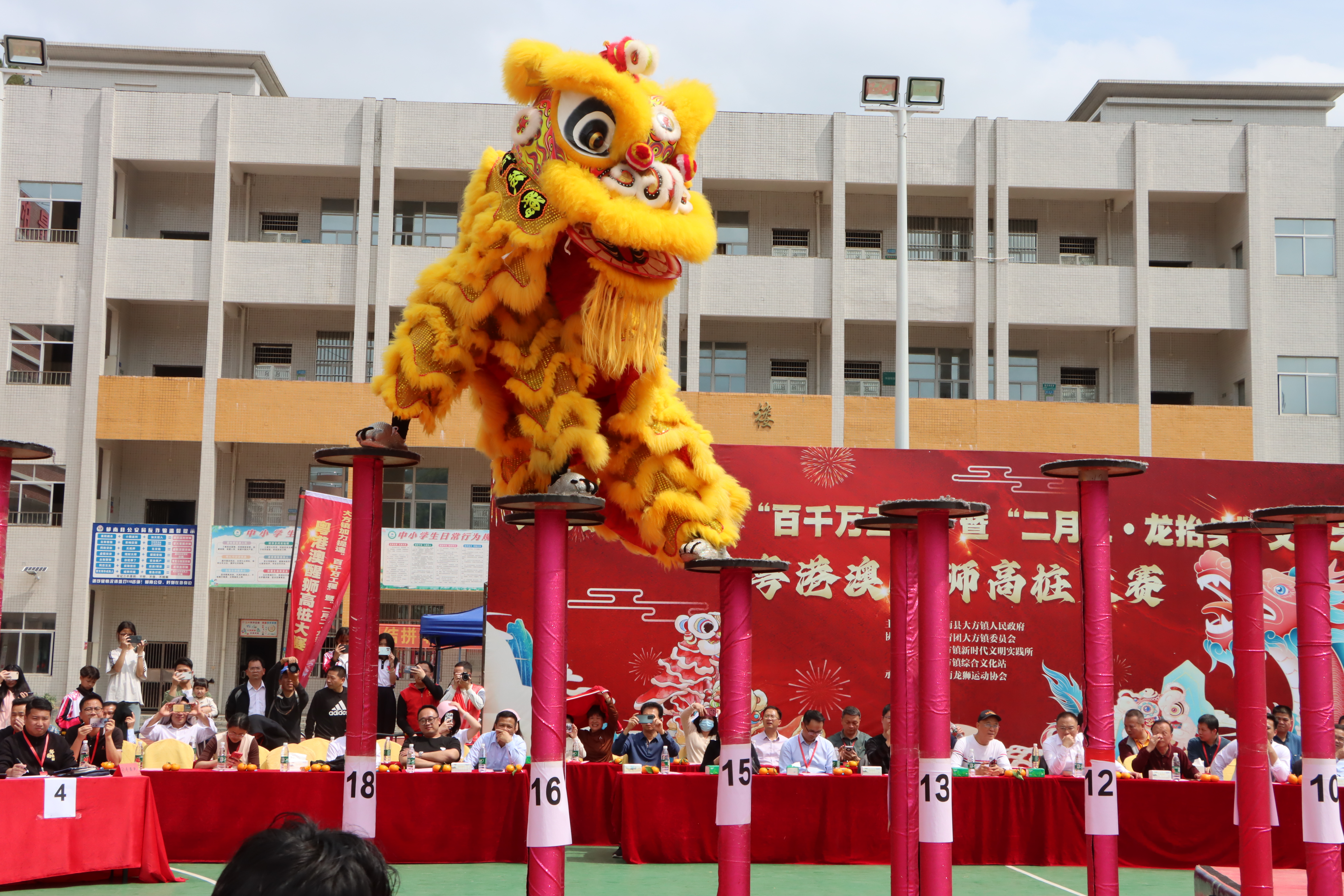 中午,万众瞩目的“粤港澳醒狮高桩大赛”将现场气氛推向高潮,引来众多村民游客围观、拍摄、打卡。比赛汇聚了来自粤港澳大湾区的佛山、香港、澳门等地区的9支青少年醒狮队。伴随着震天锣鼓声,灵巧的“雄狮”们在高低不同的梅花桩上穿越,时而腾空跃起、时而低头俯冲、时而转身腾挪、时而“倒挂金钩”……每一个动作都充满了灵气与美感。每当桩上的“雄狮少年”完成一组行云流水般的高难度动作时,现场观赛的村民游客惊叹声此起彼伏,掌声雷动。