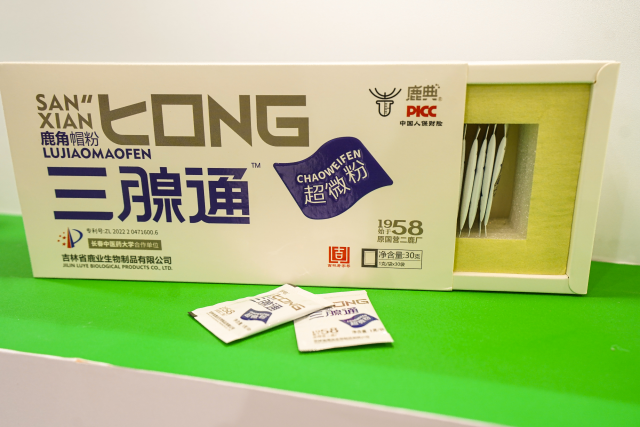 走进吉林省畜牧业展馆,鹿血酒、鹿胶肽、鹿血膏、鹿鞭人参酒、鹿角帽粉、鹿心丸、鹿茸等吉林梅花鹿产品琳琅满目,高端大气上档次。