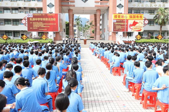 6月21日下午,在第38个国际禁毒日到来之际,韶关市乳源瑶族自治县乳源中学1700多名初一、初二学生参加了预防未成年人犯罪和禁毒宣传普法教育活动。此次活动由韶关市中级人民法院、中共乳源瑶族自治县全面依法治县委员会办公室、乳源瑶族自治县司法局和省乡村振兴驻乳源瑶族自治县一六镇帮镇扶村工作队(以下简称驻一六镇帮扶工作队)联合主办,也是乳源瑶族自治县2025年“四个一”法律服务活动之校园安全教育系列活动。