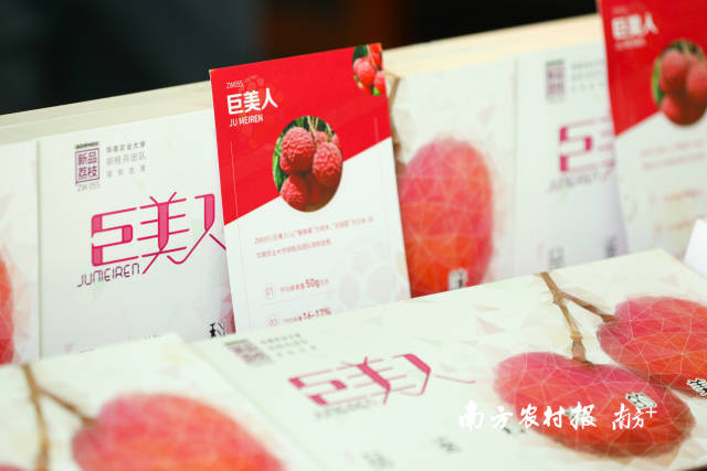 “巨美人”荔枝是惠来特色荔枝品种之一,其果型圆润饱满,单果重超过50克,肉质爽脆细嫩,荔枝风味浓郁。荔丰科技专业合作社负责人罗海锋介绍,“巨美人”是以“紫娘喜”为母本、以“无核荔”为父本,采用人工有性杂交创制的杂种群体中单株选育而成的荔枝新品种。在近年的专业培育与推广下,“巨美人”成为了惠来荔枝独特的一张招牌。“很多采购商专门来惠来,就是为了找这一个品种的荔枝。”罗海锋说。