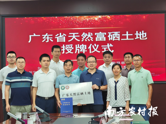 据了解,作为省纵向帮扶驻兴宁的成员单位,广东省地质局紧紧围绕“兴宁所需、地质局所能”谋划帮扶项目,统筹该局在农业地质方面的资源和专业优势,自去年以来,派出工作团队在兴宁无偿开展土壤质量与农作物富硒专项调查,共取样300余份,其中,在对黄槐镇南部区域开展调查的过程中,发现该区域土壤硒含量表现突出,土壤样品富硒率达85%,是发展天然富硒产业的理想沃土。2025年5月,经黄槐镇政府申报、兴宁市自然资源局推荐,该镇3701亩土地在广东省地质学会组织的评审中顺利通过,成功获得“广东省天然富硒土地”认定,成为梅州乃至粤东首块获此省级认定的地块。