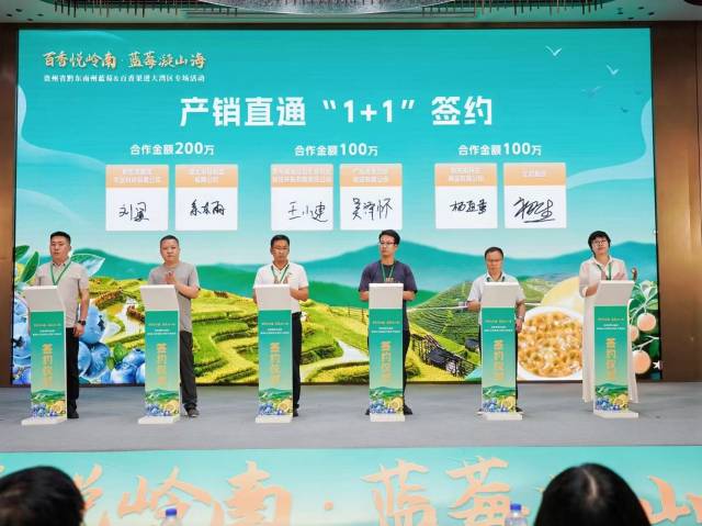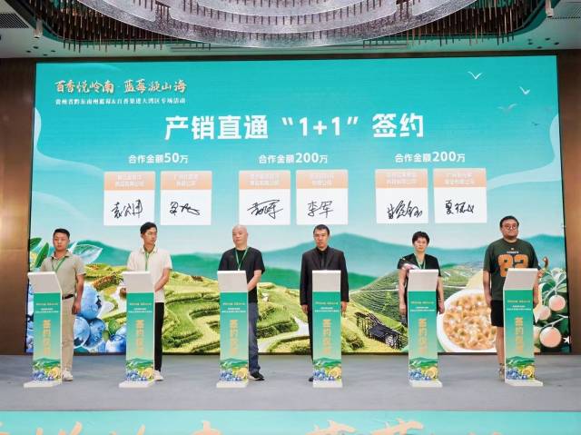 在合作签约环节,湖北禾裕食品有限公司、黔东南鹏辉农业科技有限公司、贵州省从江县七香农业投资开发有限责任公司、广东优果农业投资有限公司等20家单位现场达成产销合作签约,签约金额共1400万元。