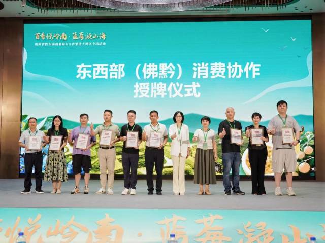 活动现场还举行了东西部(佛黔)消费协作授牌仪式,为南方农村报社、深圳市方思乐成餐饮有限公司、广州市钱大妈农产品有限公司、南方优品、佛山鹏辉农业科技有限公司、贵州苗厨酸汤食品有限公司、黔东南民生食品有限公司等16家对支持佛黔协作工作的单位、企业和个人颁发证书。