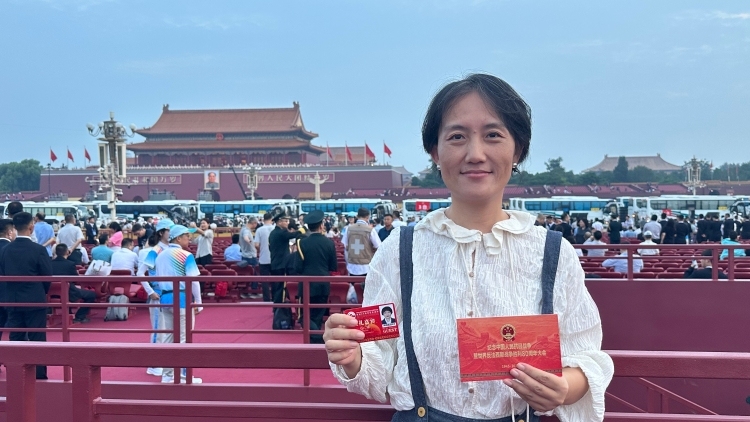 今天清晨6点,天安门广场已经汇聚成欢乐的海洋。雷健与来自世界各地的观礼人群一起,等待着纪念中国人民抗日战争暨世界反法西斯战争胜利80周年阅兵的开始。