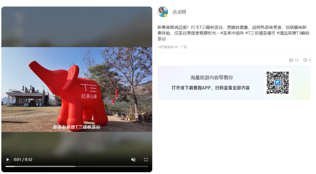 以“红茶谷・骑福马・行好运”为新春主题的积庆里红茶谷,凭借山水相依的茶田景致与丰富的亲子体验,成为春节期间亲子家庭出游的首选之地,累计接待游客超万人,收获广泛好评。