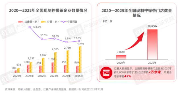现制柠檬茶赛道的持续火热,吸引了大量资本与创业者入局。企查查数据显示,自2021年起,全国现制柠檬茶相关企业年注册量稳定在1000家左右,截至2025年12月,全国现制柠檬茶相关企业已达3200余家,行业活力持续释放。