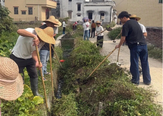 在太平镇江上村的田间地头,由党员干部带头、“百千万工程”互助工作队成员积极参与、群众自发加入的“春耕备种先锋队”迅速集结,分工协作、干劲冲天。行动现场,大家手持铁锹、锄头等工具,对灌溉水渠、水塘和河道进行拉网式清淤疏浚。清杂草、挖淤泥、通堵点、整堤岸......现场热火朝天,干劲十足。