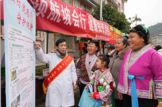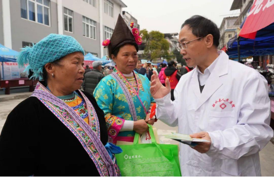 医务人员为群众答疑解惑、提供健康指导义诊。