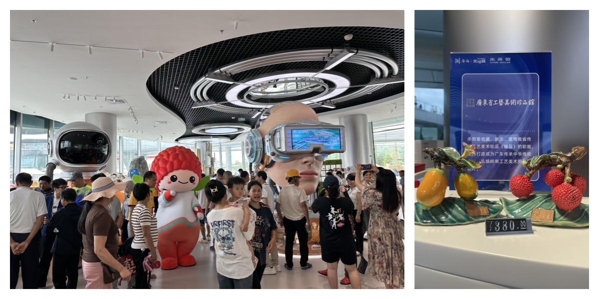 其中,“未来馆”特别引进广东工艺美术珍品馆的荔枝系列艺术品,生动展现荔枝形态之美,游客在休息之余还可将高州特色文创产品带回家,进一步延伸荔枝产业链条,增强文旅融合附加值。